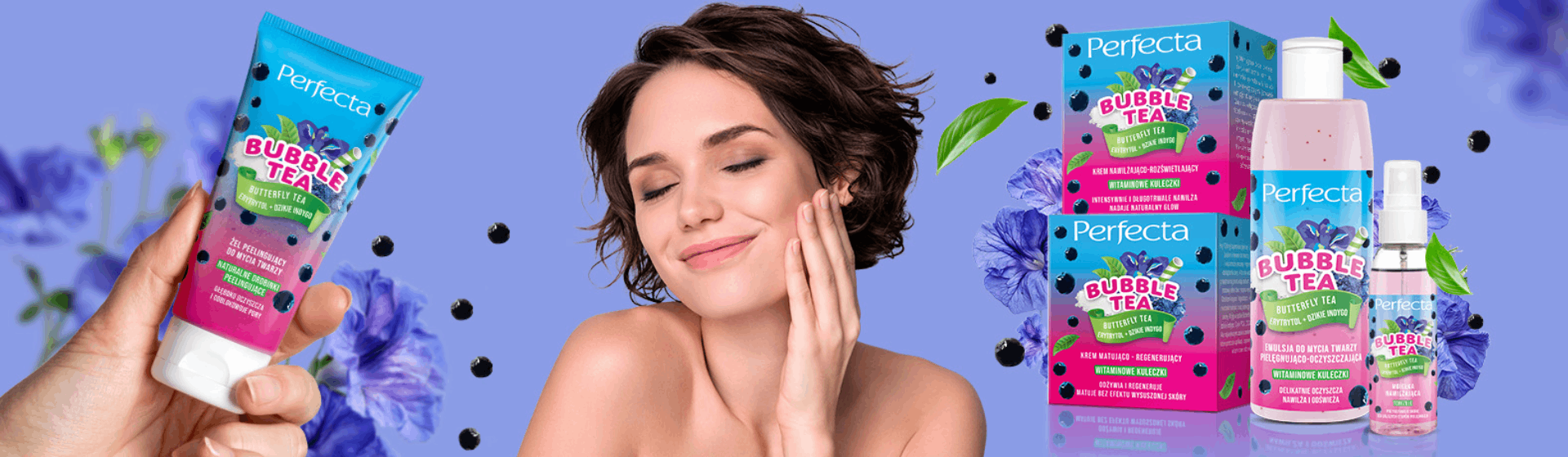 Perfecta Bubble Tea- Nowa linia SKONCENTROWANYCH żeli pod prysznic inspirowana popularnymi napojami BUBBLE TEA. Odkryj atrakcyjne owocowe fuzje i zachwyć się intensywnymi, egzotycznymi zapachami. Zrelaksuj się, otulając swoje ciało delikatnie aksamitną pianą. Poczuj wyjątkowe bąbelki na swojej skórze! Dodatkowy efekt nawilżenia zapewniają hydrożelowe kulki rozcierające się w czasie mycia. Spraw sobie chwilę relaksu dla ciała i zmysłów!